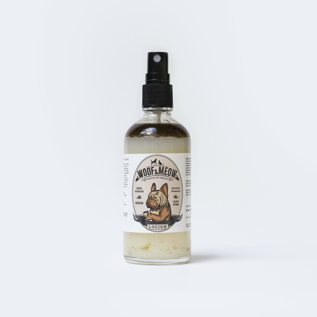 Creamos este ligero repelente en spray para ayudar a combatir y prevenir la aparición de pulgas y garrapatas, gracias a la acción repelente del aceite de Neem, el Aguaribay y el aceite esencial de Citronela.