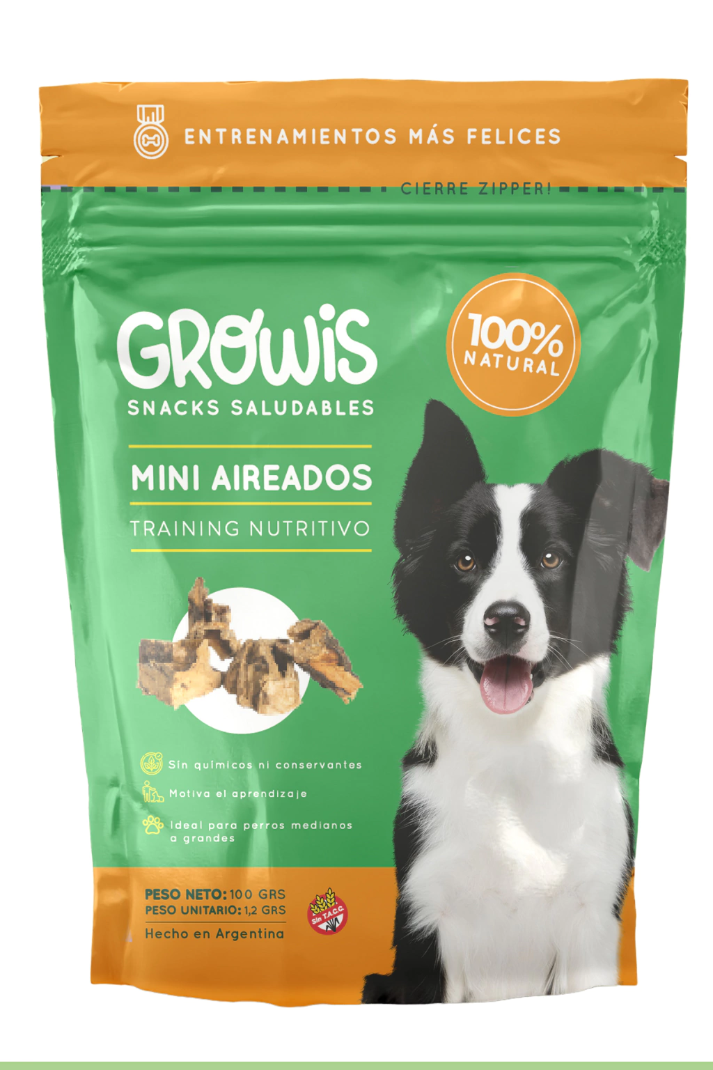 Entrenamientos más felices junto a nuestros snacks. Motiva el aprendizaje junto a los Mini Aireados. Apto para todos los públicos, hasta los más quisquillosos. Está compuesto por carne vacuna. Hechos con mucho amor, especialmente para reforzar el aprendizaje y premiar a tu perro amigo de una manera rica, natural y nutritiva! Por su textura y tamaño este snack es ideal para GatiAmigos.